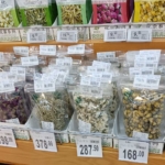 こちらは、普通っぽいお茶。すでにパックになっているものを買うもよし、自分で、分量を計って買うもよし。試しに、鉄観音(てぃえぐぁんいん)を買ってみました。鉄観音は、油ものが多い中華料理に合います。