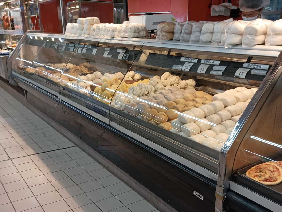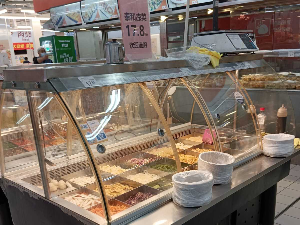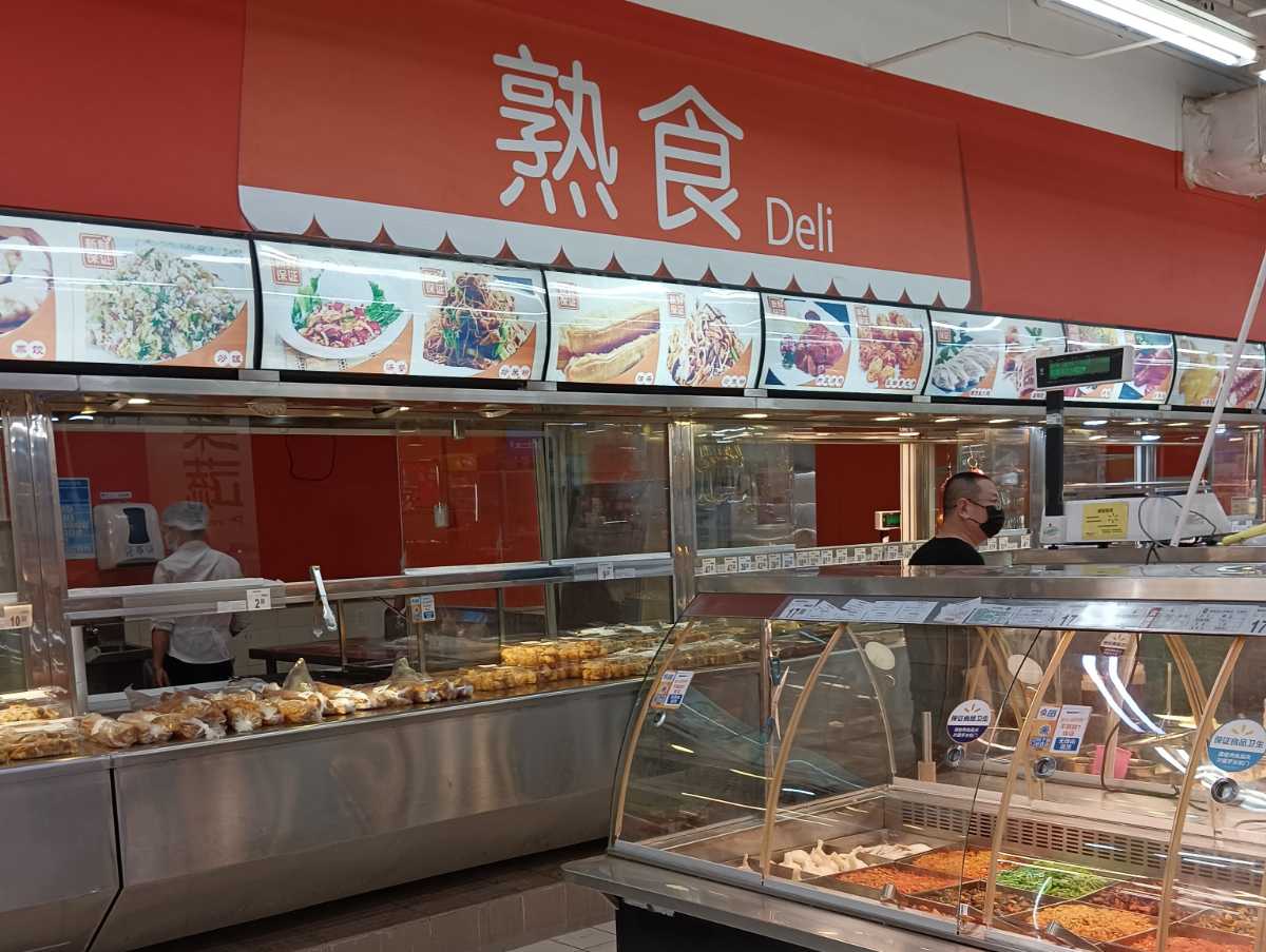 デリカテッセン(熟食/しゅーしー)コーナーもあります。蒸し物、揚げ物、涼粉とか、いろいろあります。(あまり美味しくないけど)。涼粉(りゃんふぇん)は、中華風レーメンみたいな感じで、店員さんに「これとこれ」と指示すると、混ぜてくれるます。