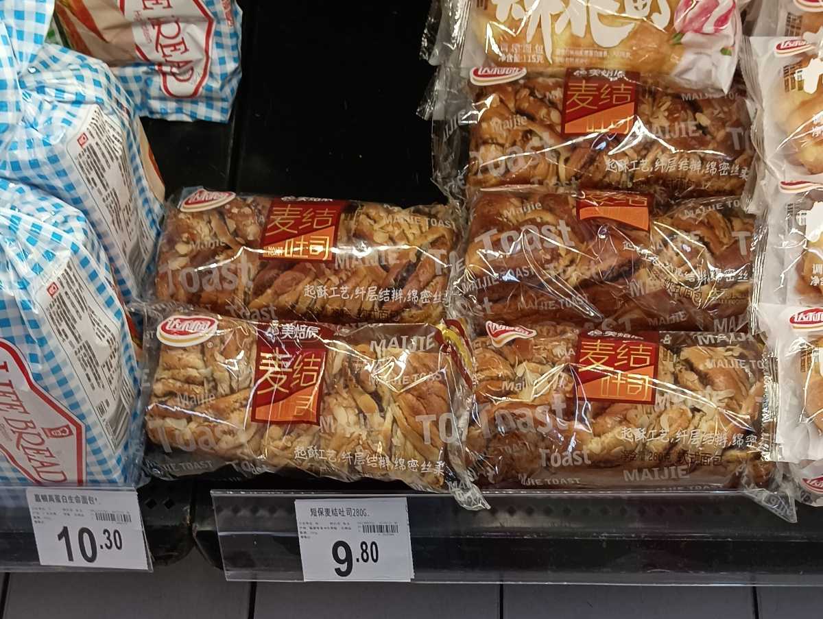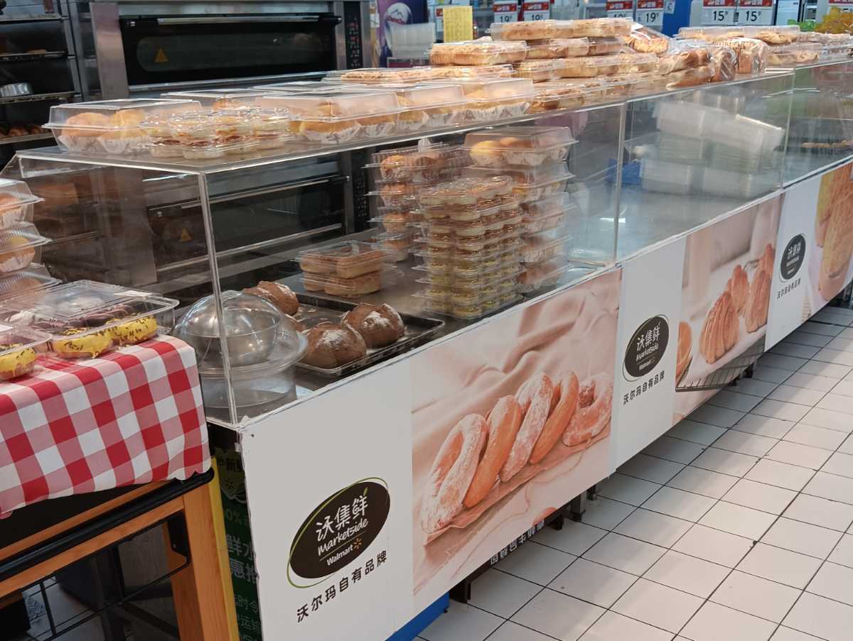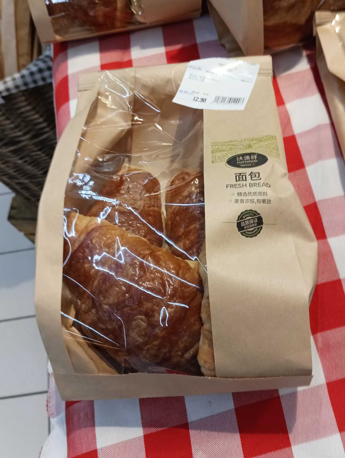 ウォルマートのパン類ですが、その場で焼いたものを提供しているようで「沃尔玛自有品牌(ウォルマートのプライベートブランド)」と銘打っています。安くてそこそこ食べられるので、悪くない感じです。