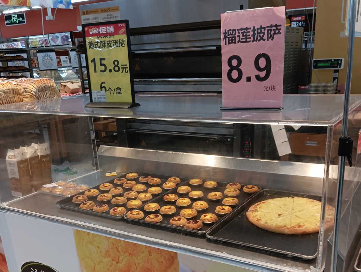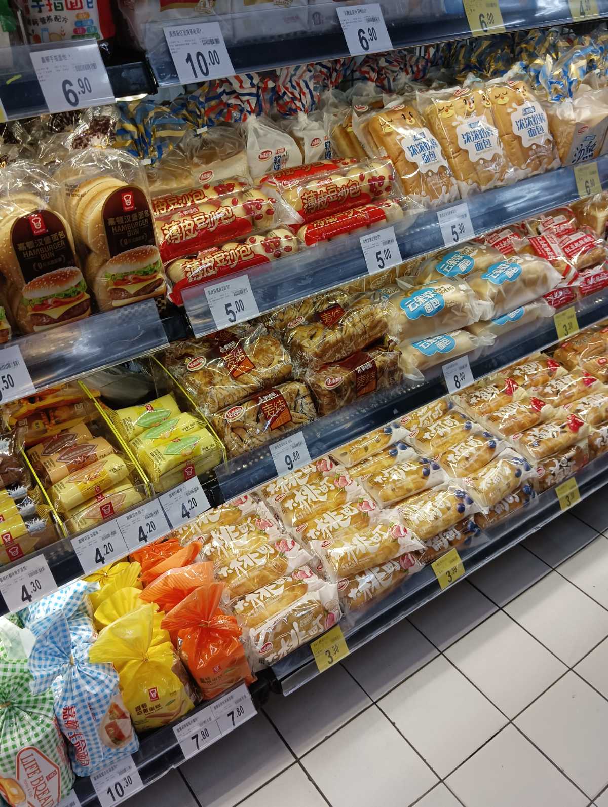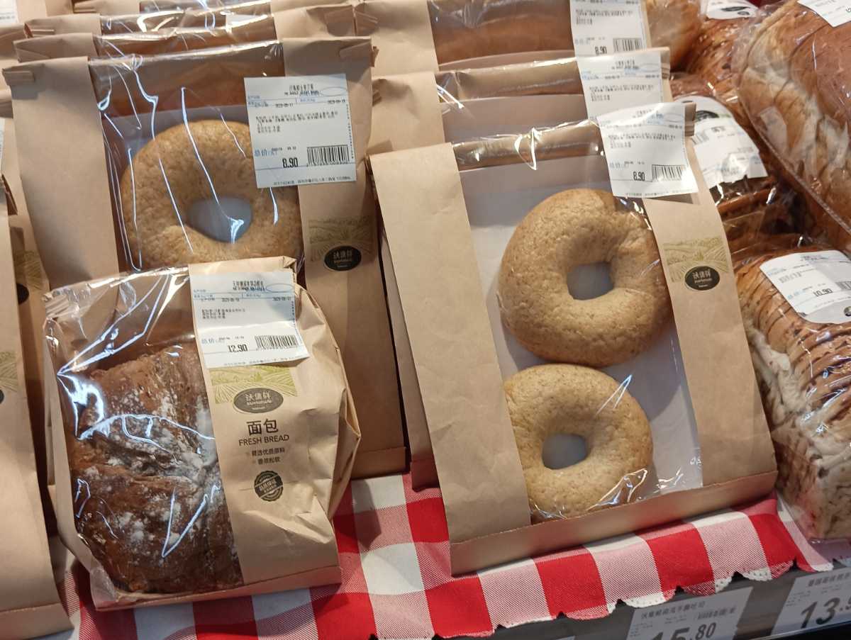 ウォルマートのパン類ですが、その場で焼いたものを提供しているようで「沃尔玛自有品牌(ウォルマートのプライベートブランド)」と銘打っています。安くてそこそこ食べられるので、悪くない感じです。