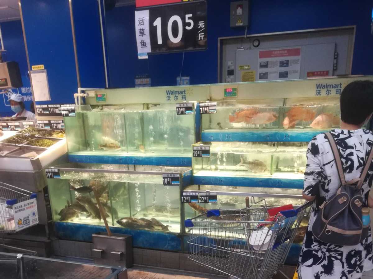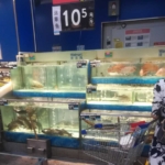 中国の魚売り場は、いつ行っても、ワイルドですね。魚は、生け簀で泳いでいる魚を自分で網ですくうか、店員さんに言ってとってもらいます。