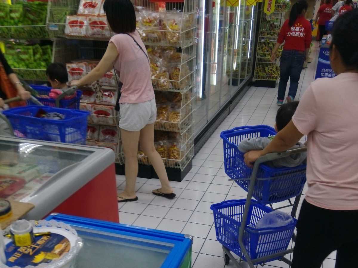 平日の昼だからか、人影もまばらです。さすがに、このあたりまでは、香港人も来ないかな。自分がいつも行く国貿のスーパーは、香港人で満員電車のようになっているので、逆に、新鮮な感じがします。